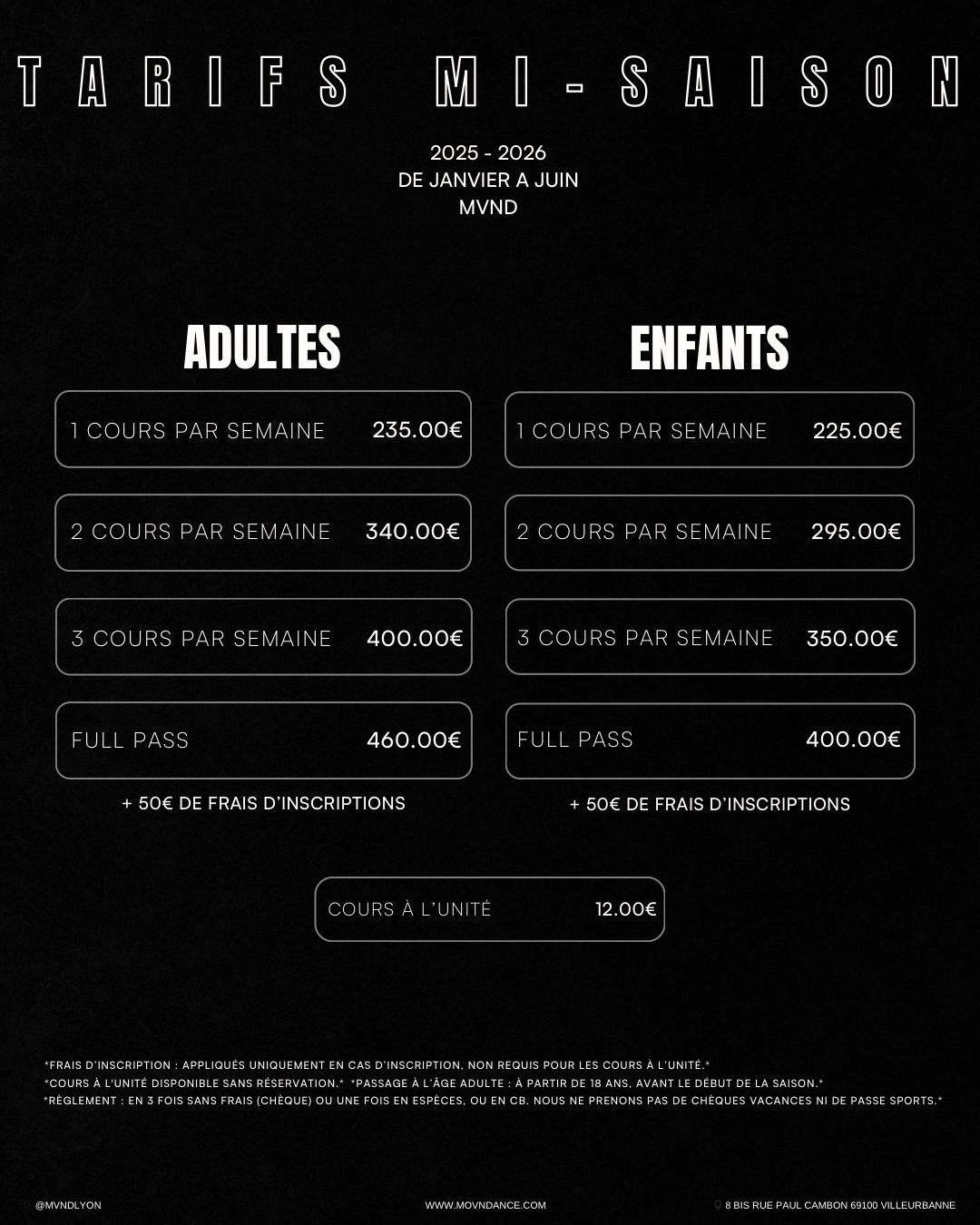 – fermé du 20 déc. au dim. 04 janvier (pour tous)